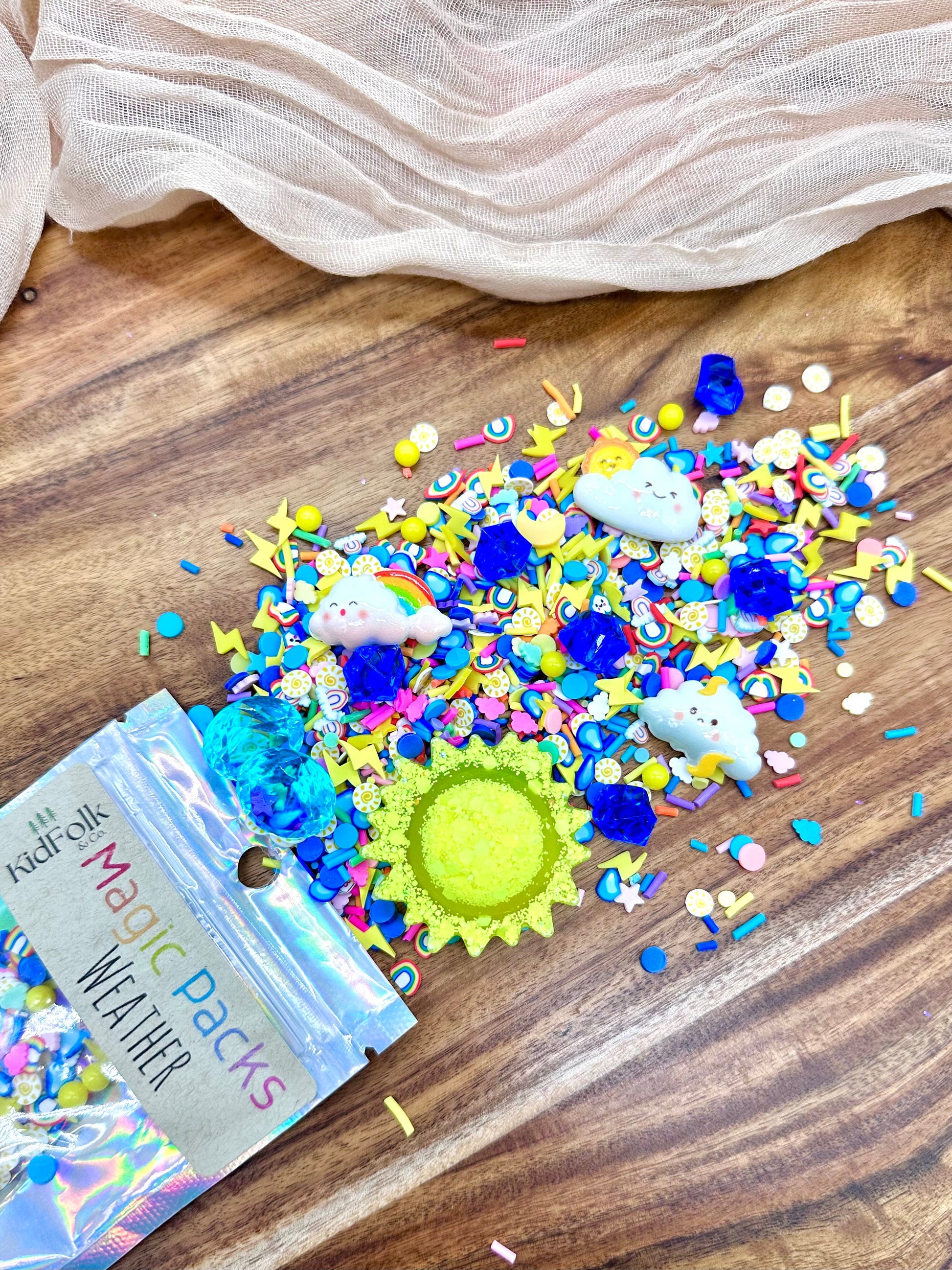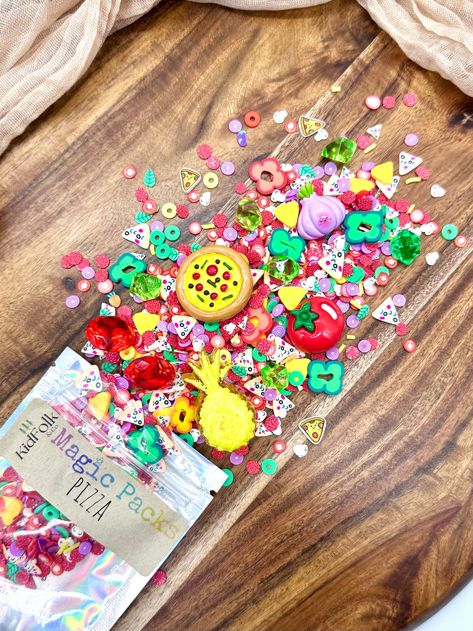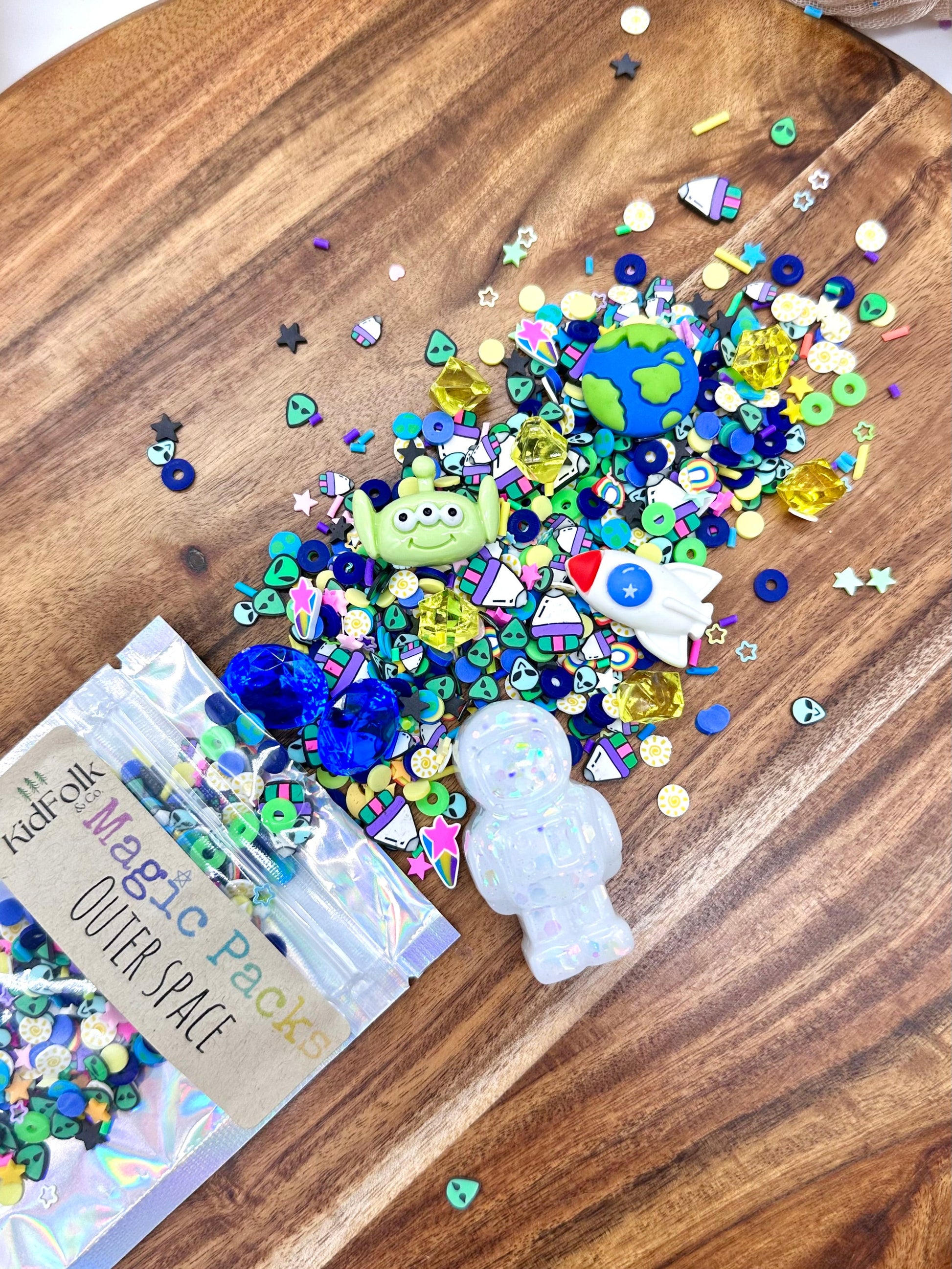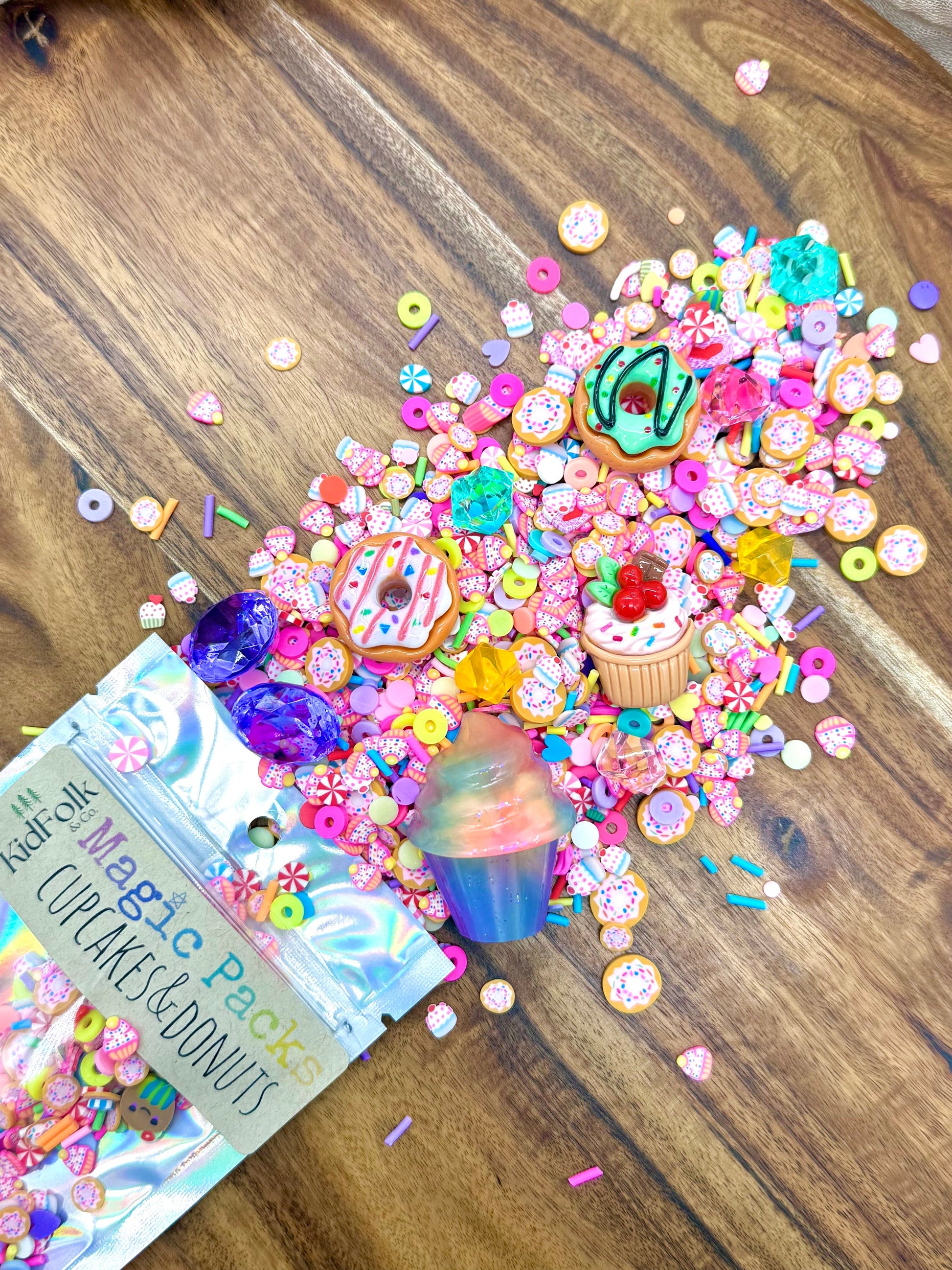 Upgrade your Magic Dough, Slime or Potion with our themed accessory packs! These theme packs are filled with our own uniquely curated polymer clay sprinkles mixes, resin toys and acrylic gems!