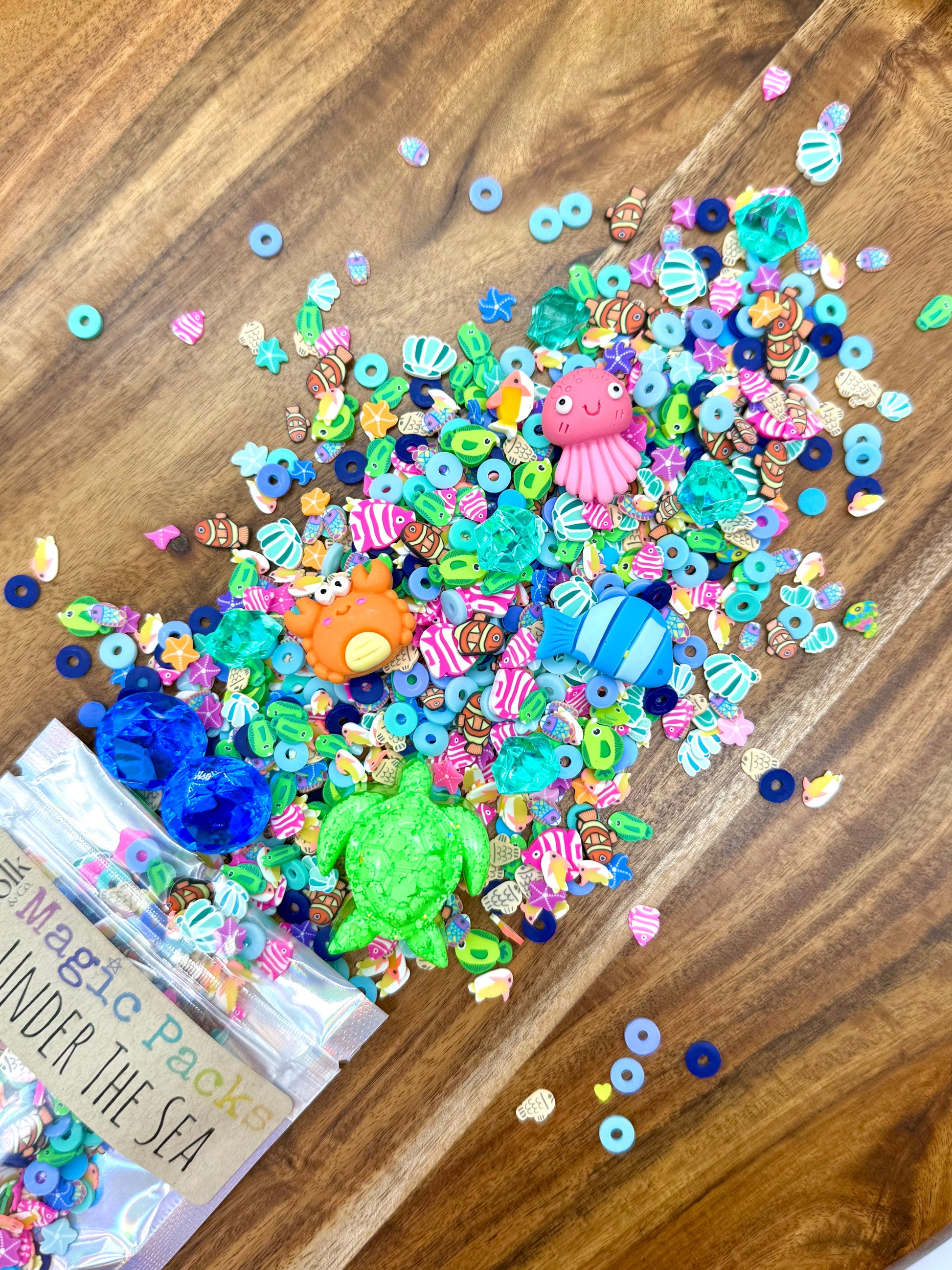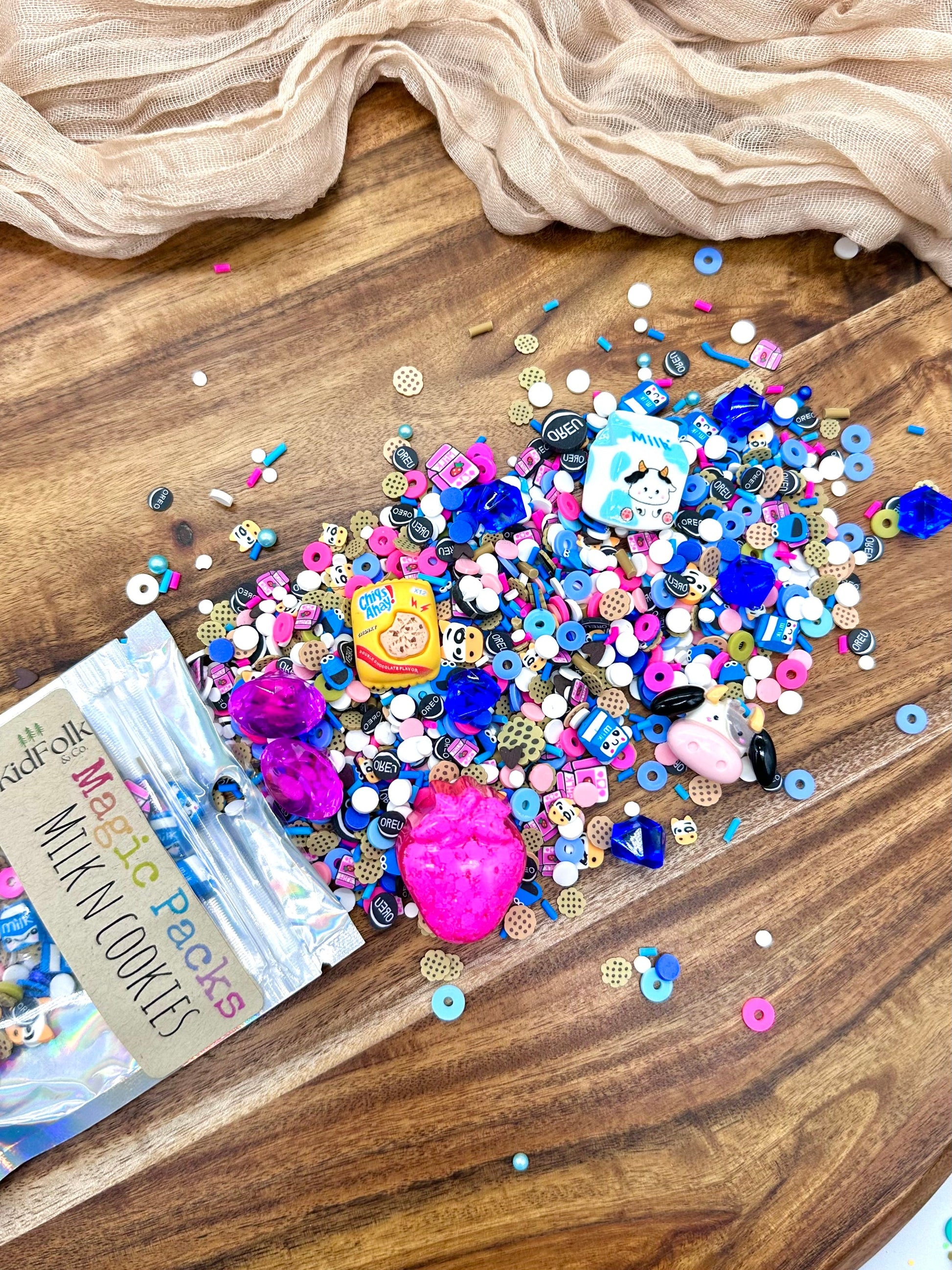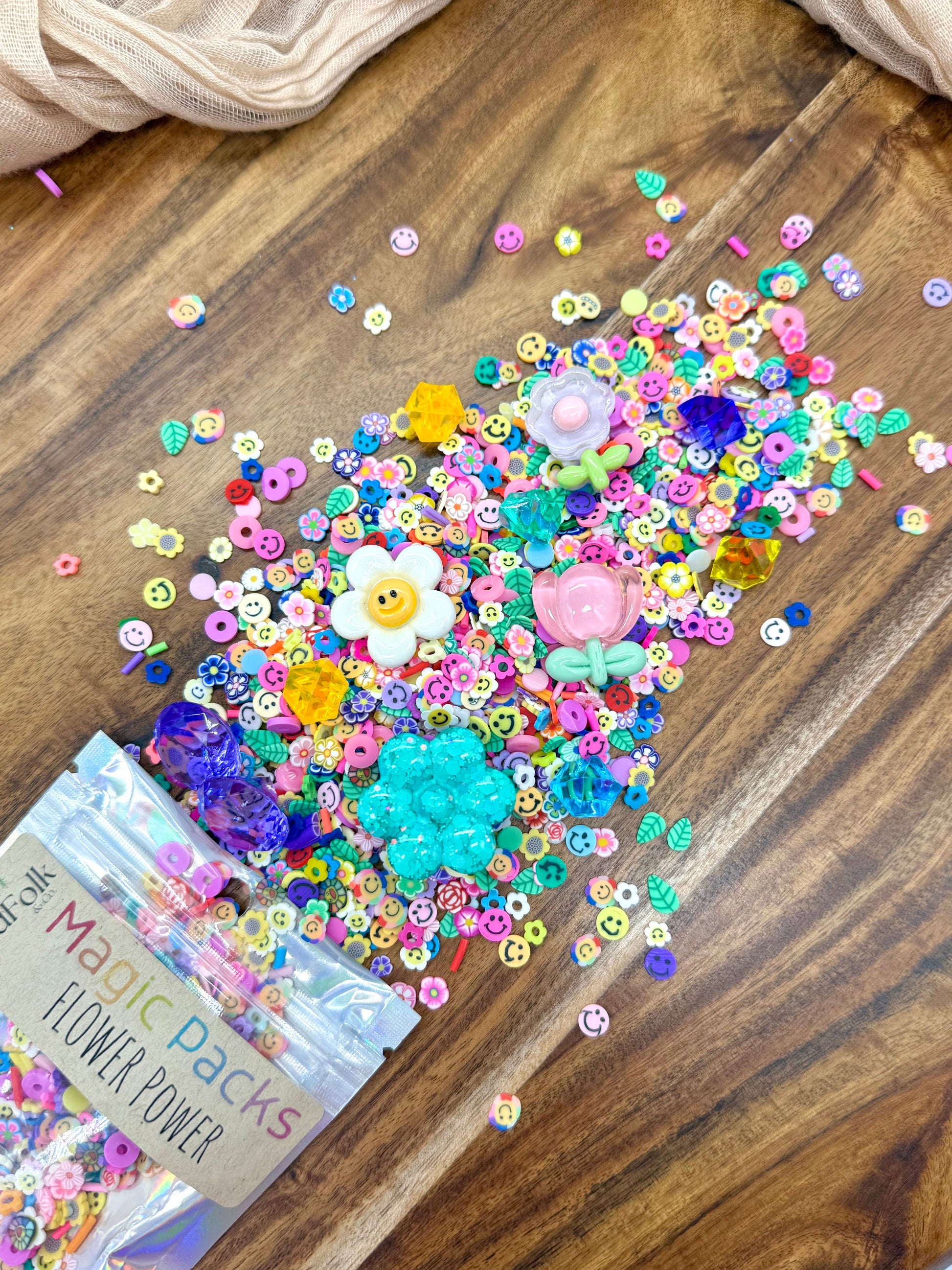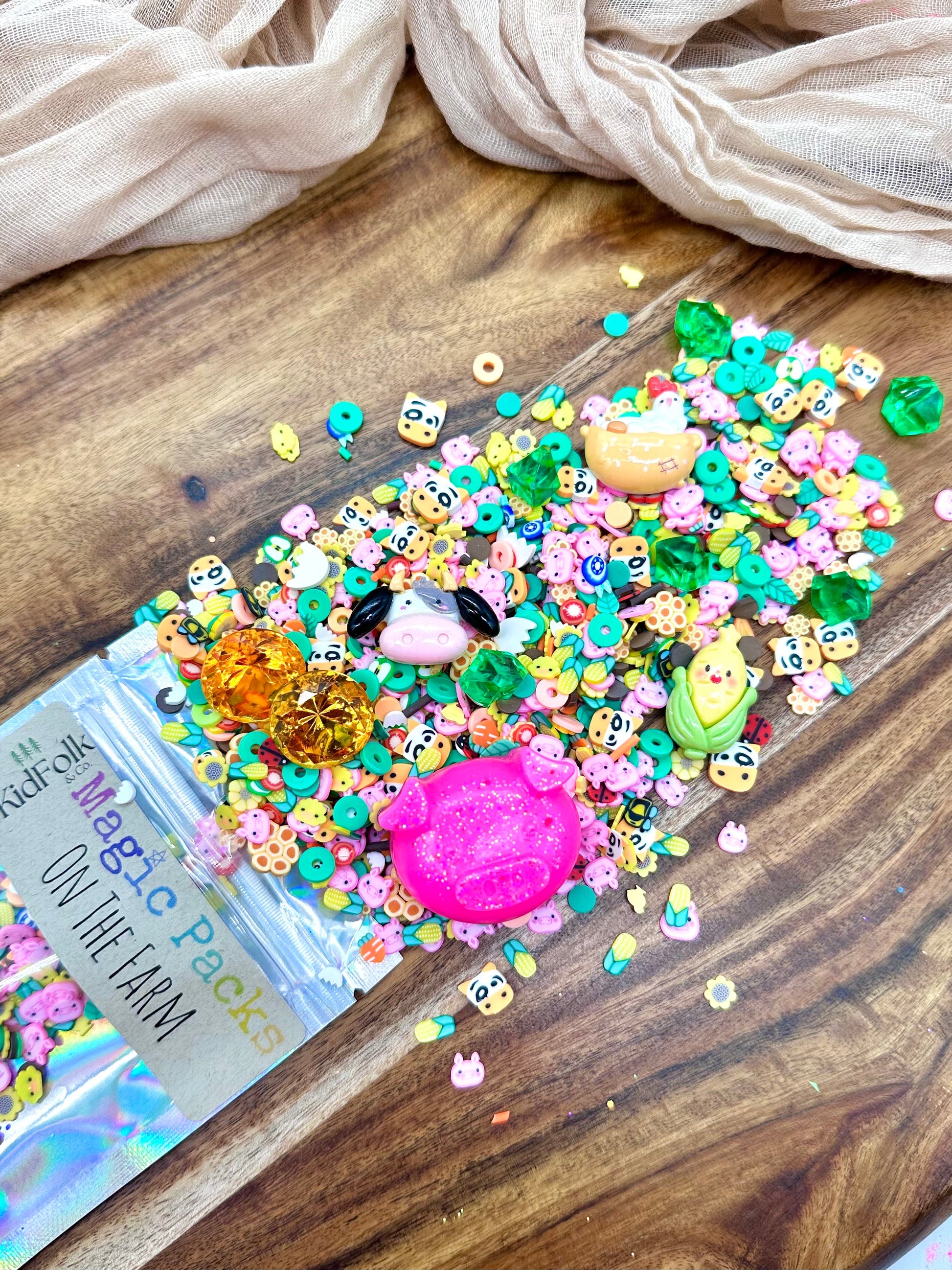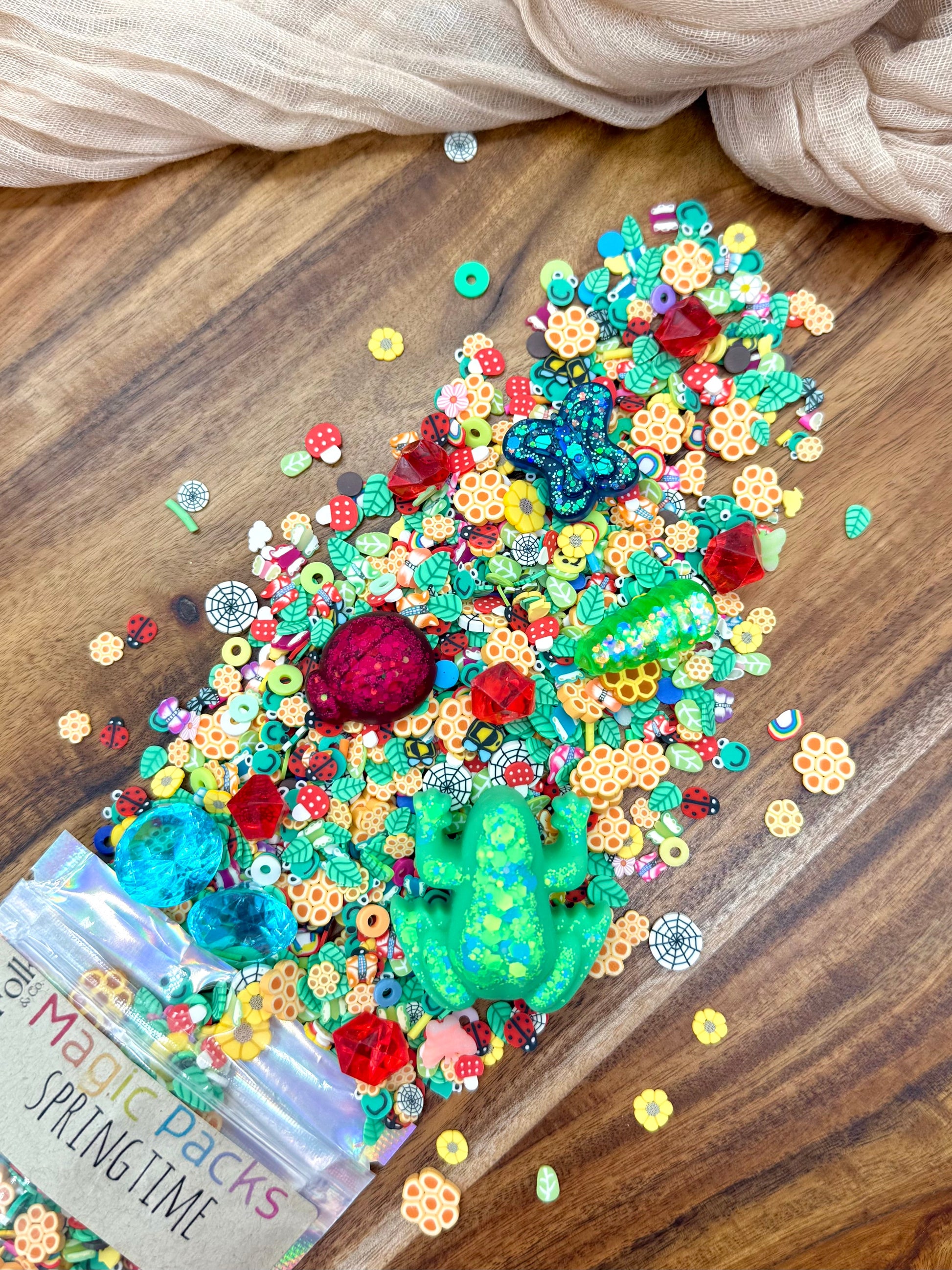 Upgrade your Magic Dough, Slime or Potion with our themed accessory packs! These theme packs are filled with our own uniquely curated polymer clay sprinkles mixes, resin toys and acrylic gems!