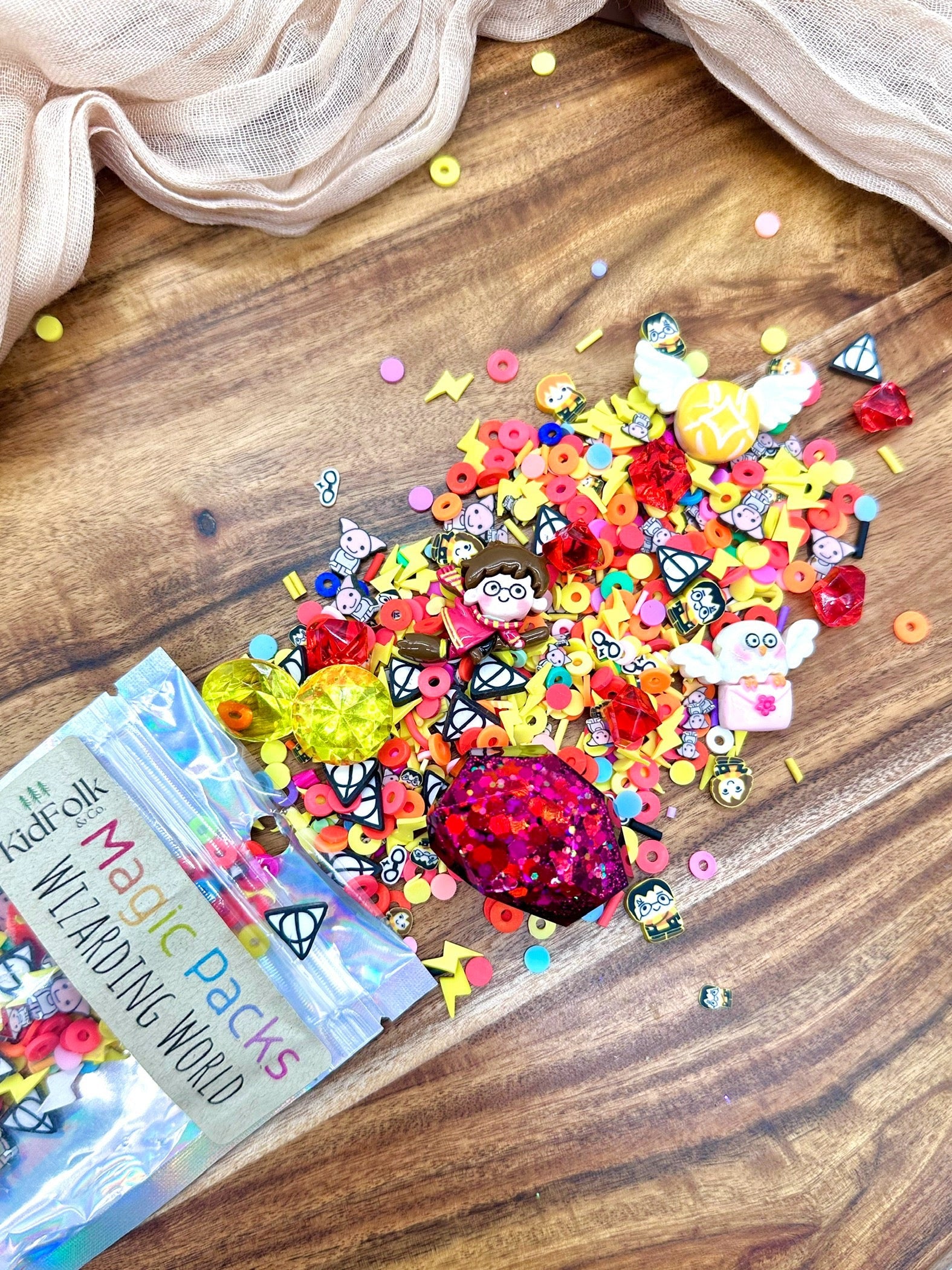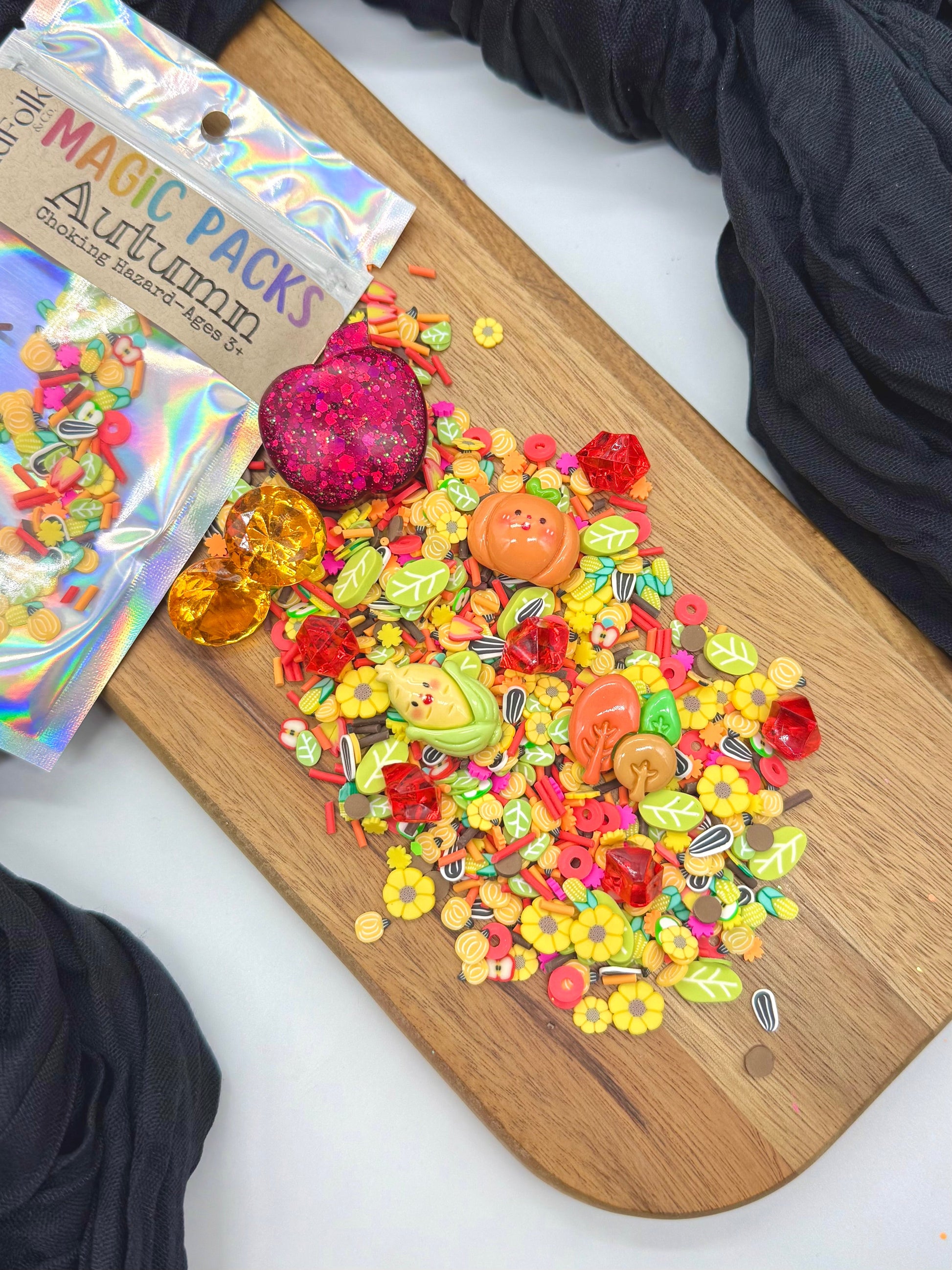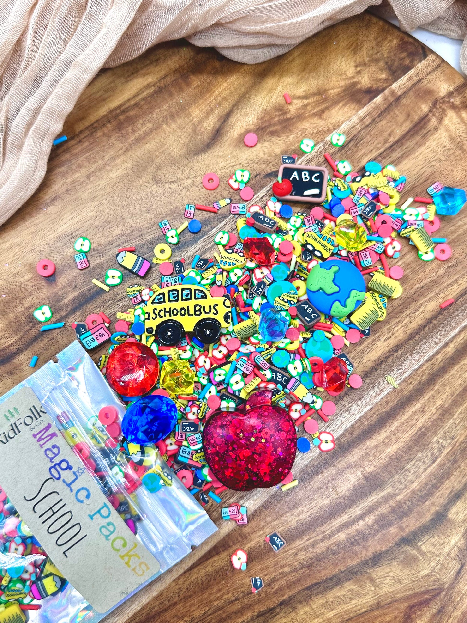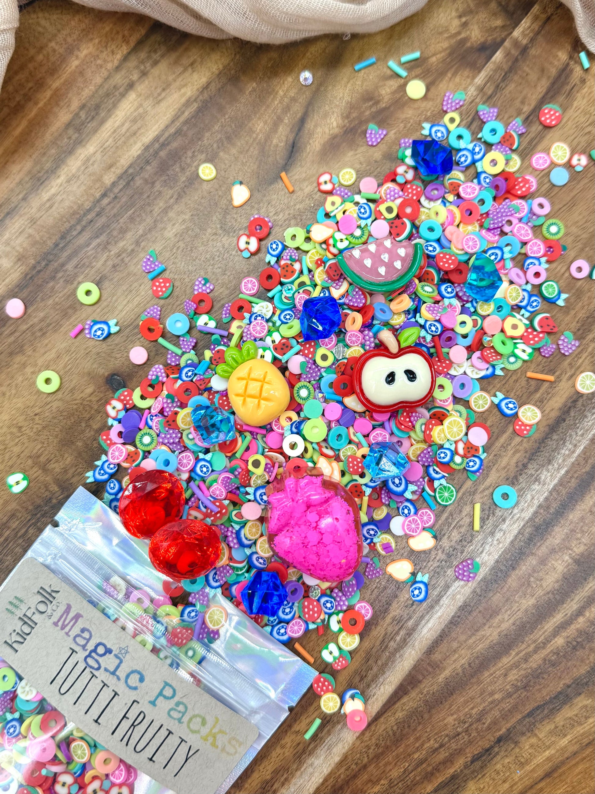 Upgrade your Magic Dough, Slime or Potion with our themed accessory packs! These theme packs are filled with our own uniquely curated polymer clay sprinkles mixes, resin toys and acrylic gems!