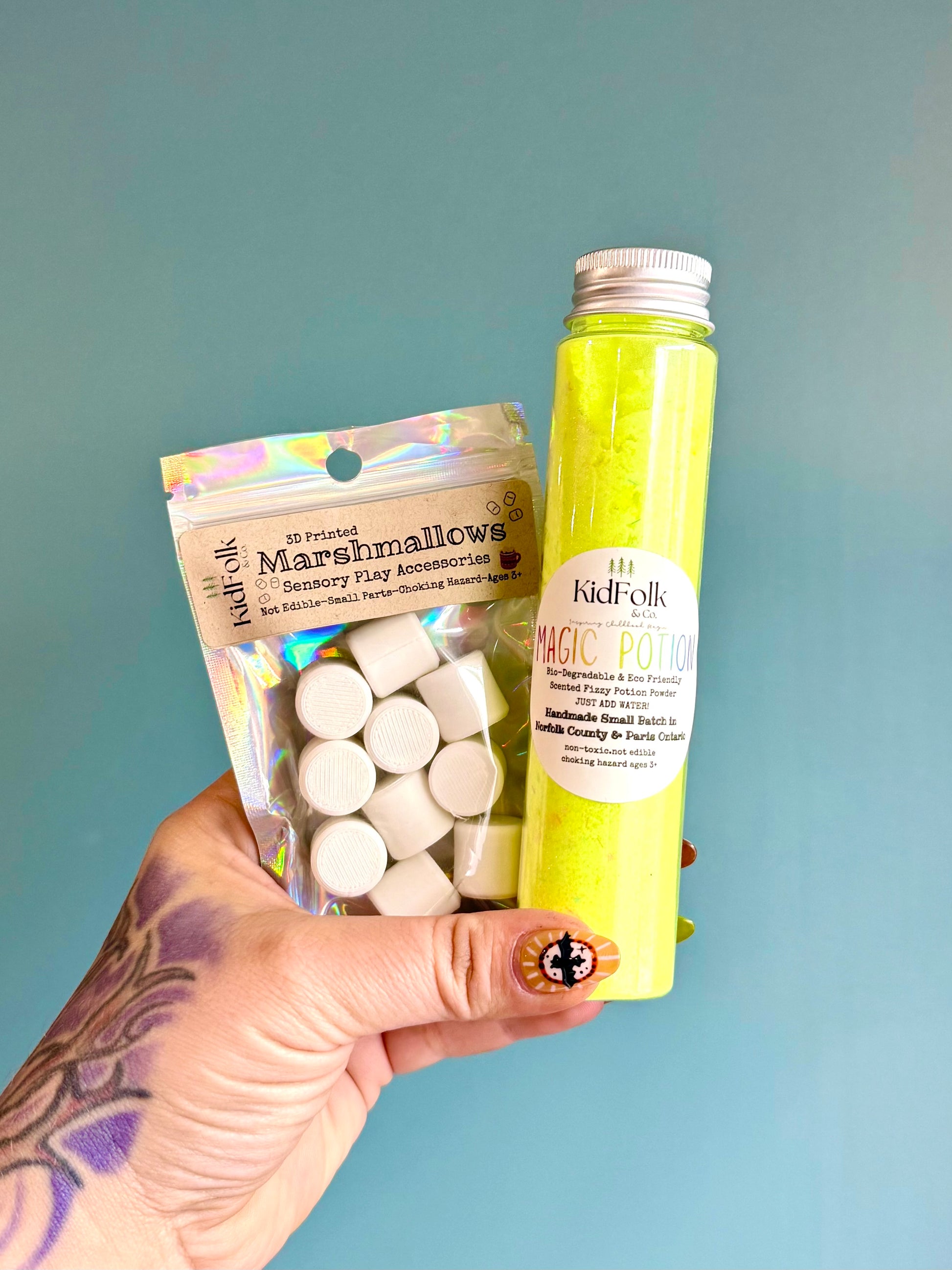 - 1 Pack of 10 Mini 3D-Printed Marshmallows (eco-friendly PLA, biodegradable, and perfectly sized for play)
